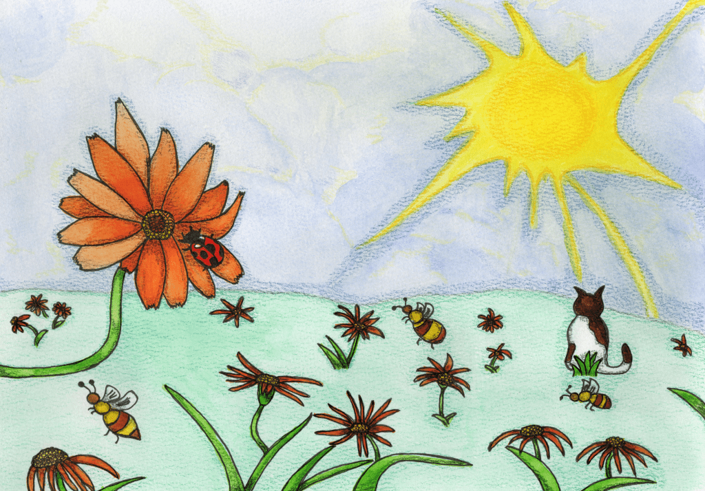 Het gedicht heeft officieel geen titel, dus de eerste regel van het gedicht werd de titel. We lezen in het gedicht wat de dichter te bieden heeft. Ze biedt alles wat in haar zicht is, of in haar gedachten, dus alle weilanden, de velden en de bijen in de tuin.