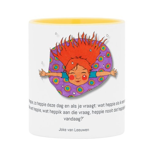 Beker met gedicht van Joke van Leeuwen ‘Heppie’.